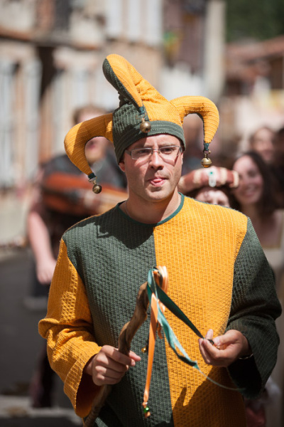 Fruit de recherches sur le costume médiéval, le patron est méticuleusement préparé, les étoffes choisies avec gout s’assemblent une à une pour progressivement donner vie à un éclatant costume qui transformera bientôt un de nos contemporain en authentique moyenâgeux.